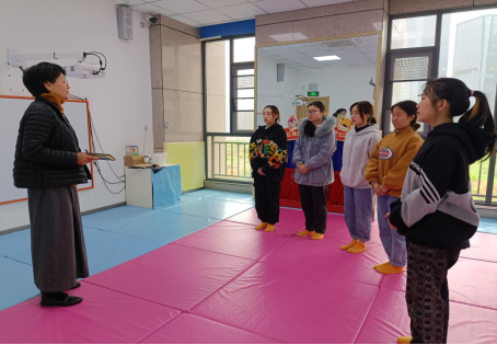照片二:红黄蓝亲子园邱园长给实习生安排工作