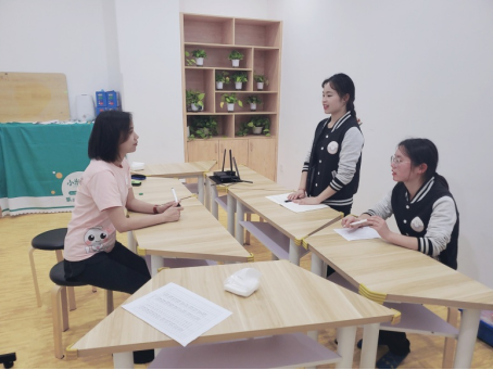 2021年4月23日下午14点,我系游佳老师来到了乐蒙家儿童成长中心参加了2019级早教2班四名同学的实习总结会,总结会由中心负责老师陆老师主持,各位同学及他们的实习指导老师参加了会议。