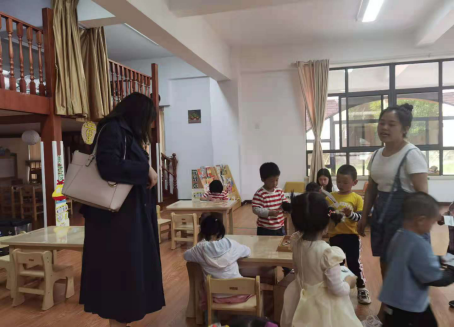 田秀玲老师就幼儿园常见传染病发生情况,进入小二班与班级教室、保育员进行沟通,了解班级卫生与消毒,家长宣传等内容。