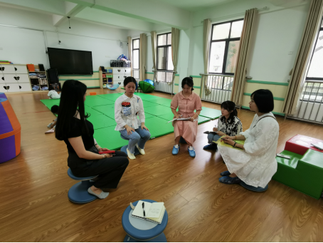 活动结束后,黄冉同学就活动开展情况进行反思,全体成员思考与共享进一步完善的方法及策略,为下周托三班音乐感统活动的开展打下基础。