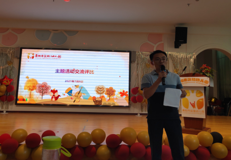 2021年7月9日,学前教育专业幼儿园课程教学团队岑秀华、方银辉、刘腾龙、曲亚静、林俊延五位老师到贵阳市实验幼儿园(分园)入园实践,本次入园实践的主要目的是参与幼儿园主题活动交流评比,幼儿园各班级12位老师分别就本学期实施的12个主题活动进行汇报。
