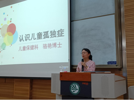 骆艳主任以“认识儿童孤独症”为主题,从发生原因、临床表现、如何早期诊断、治疗策略以及病程与预后五个方面结合近年科学研究统计数据开展讲座,并对贵阳市妇幼保健院儿童保健科的基本情况及团队建设情况等作了简要介绍,呼吁早期教育专业的新鲜血液加入到团队中来。