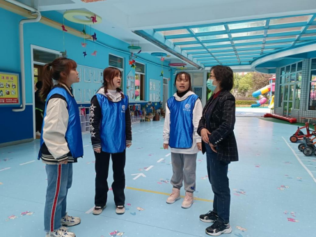 2021年10月19日,上午9点,学前教育与早期教育系副主任李晓芳、实习实训教研主任建菊、教务科夏万丽老师、朱梦黎老师、廖思璇老师前往贵阳市观山湖区第一幼儿园检查我系2021年第一学期第一批常规实习学生下园实习情况。