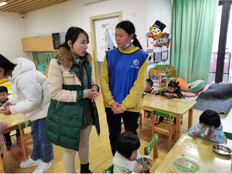 转眼,今天是实习的最后一天,同学们的精神状态格外高涨,完成扫码、签到后,孔霞老师跟随实习学生进入到各个实习班级。在与部分幼儿园班级指导老师沟通后,欣喜地收到了幼儿园老师对同学们在实习过程中认真负责和踏实细心的评价,同时也指出了问题与不足。对于个别同学在工作中存在消极懈怠的情绪,孔霞老师积极地与幼儿园老师和相关学生进行了沟通,并对学生及时的进行了思想态度教育。