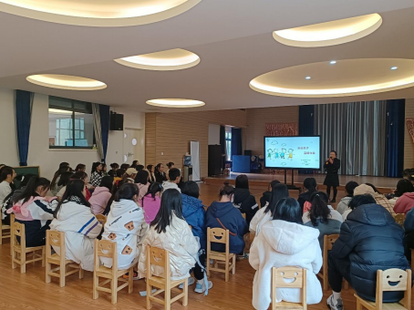 接着,张园长围绕其幼儿园的培养目标:爱运动、喜阅读、重品行,通过一个个生动鲜活的案例,和大家分享了作为一名学前教育专业的学生,如何走进幼儿园,又如何走近幼儿。同学们对幼儿园教师的工作价值都有了深刻的认同感。
