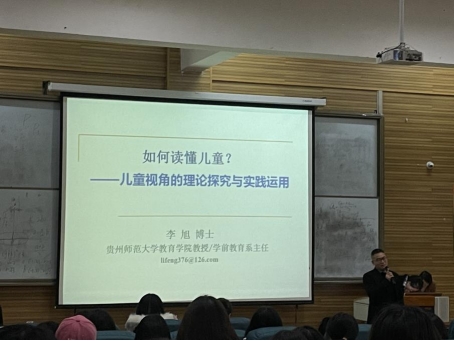 2021年11月19日上午十点半,在学校知行楼二楼多功能报告厅,贵州师范大学教育学院学前教育系主任李旭博士,为21级学前教育专业本科班同学开展了一场主题为“如何读懂儿童?——儿童视角的理论探究与实践运用”的讲座。2021级学前教育专业本科4个班全体同学参加了此次的讲座。