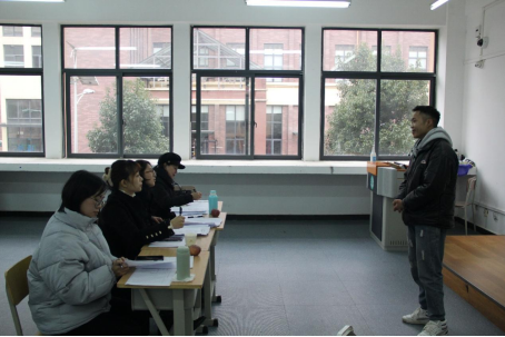照片一:考务会上学早系教务科科长李林媛老师说明考核注意事项