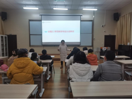 其次,由李晓芳副主任、刘腾龙、郑莹莹四位老师对师范教育专业认证诊断与思考进行研讨。郑莹莹老师针对课程目标达成情况与改进报告进行一一的讲解,大家展开研讨,集思广益,为更好的推进师范专业认证做准备。