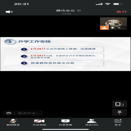 首先,由李林媛老师介绍本次会议流程,对开学初工作进行部署,并讲解了线上授课、教研室教研、授课教师资料提交、教学常规要求、教学督导安排以及学生实习安排的各项工作要求,以促进新学期各项工作顺利开展。