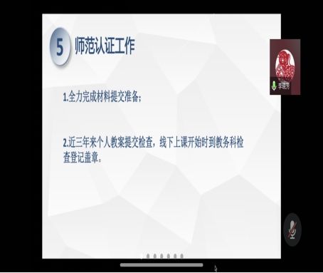 截图三:李晓芳副主任对师范专业认证工作第一阶段提交资料进行补充说明