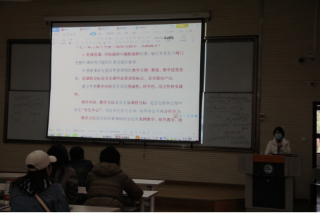 议程三,校系两级教学管理制度学习。李林媛老师带领全体专任教师对毕业要求、课堂教学、合作与实践、师资队伍、支持条件、内部监控、学生发展、校级层面的相关制度进行学习。